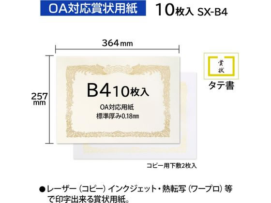 オキナ OA対応賞状用紙 B4タテ書 10枚 SX-B4 1冊(ご注文単位1冊)【直送品】