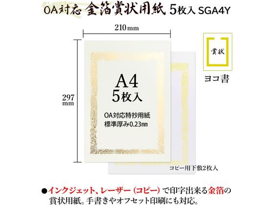 オキナ OA対応金箔賞状 A4ヨコ書 SGA4Y 1パック(ご注文単位1パック)【直送品】