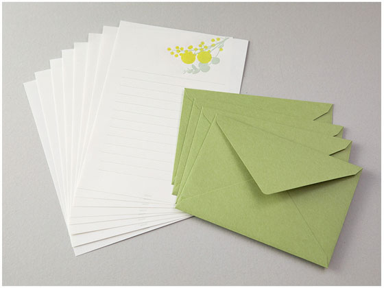 ミドリ(デザインフィル) レターセット 活版 ブーケ柄 黄 86461006 1セット(ご注文単位1セット)【直送品】