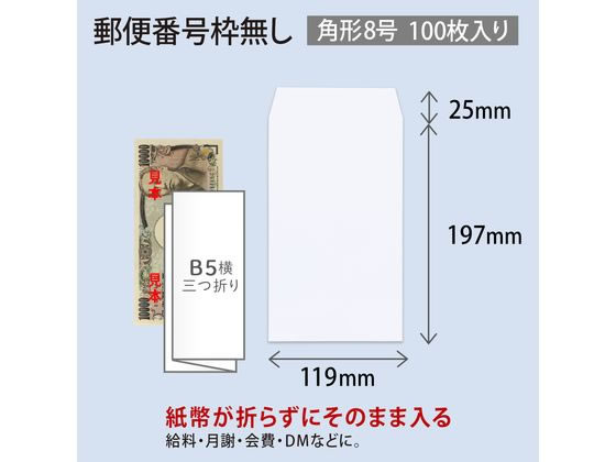 オキナ ホワイト封筒100 給料角8 枠なし 100枚 WP1680 1パック(ご注文単位1パック)【直送品】