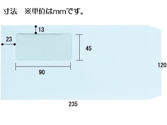 スマートバリュー 窓付封筒 長3 ブルー 100枚 テープ付 P029J-B 1パック(ご注文単位1パック)【直送品】