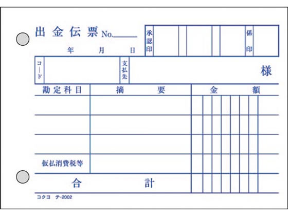 コクヨ 出金伝票 消費税欄付 テ-202 1冊(ご注文単位1冊)【直送品】