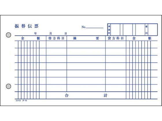 コクヨ 振替伝票 テ-10N 1冊(ご注文単位1冊)【直送品】