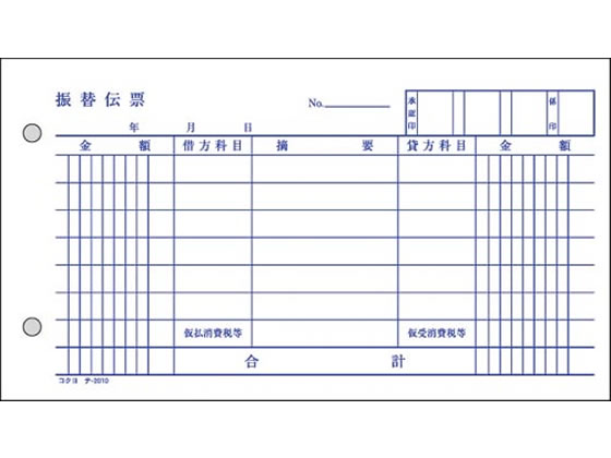 コクヨ 振替伝票 消費税欄付 テ-2010N 1冊(ご注文単位1冊)【直送品】