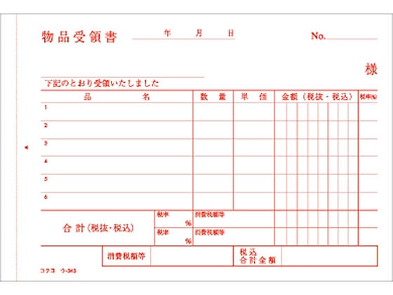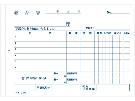 コクヨ 3枚納品書 受領付 10冊 ウ-343 1パック(ご注文単位1パック)【直送品】