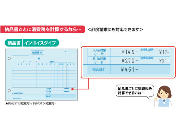 ヒサゴ 納品書 ヨコ 4枚複写 インボイス対応 BS645T 1冊(ご注文単位1冊)【直送品】