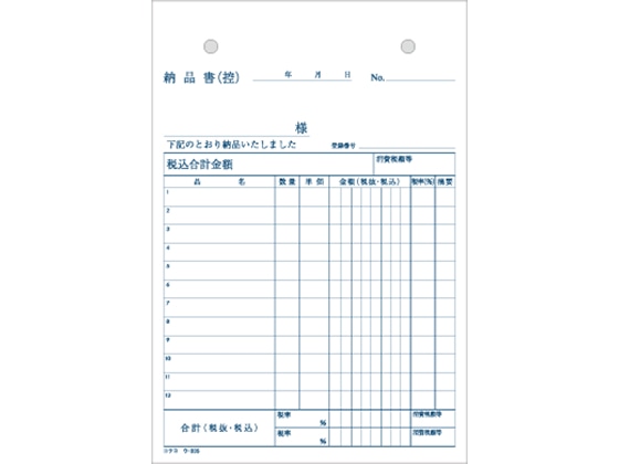 コクヨ 4枚納品書 請求・受領付 ウ-335 1冊(ご注文単位1冊)【直送品】