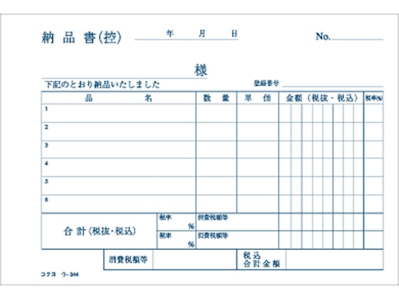 コクヨ 4枚納品書 請求・受領付 10冊 ウ-344 1パック(ご注文単位1パック)【直送品】