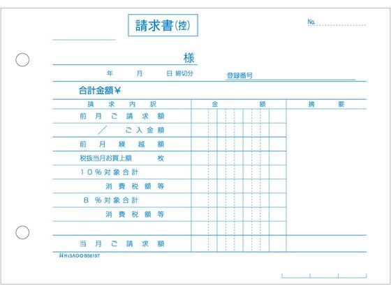 ヒサゴ 合計請求書 ヨコ 2枚複写 インボイス対応 BS619T 1冊(ご注文単位1冊)【直送品】