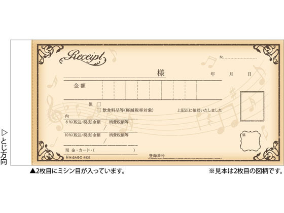 ヒサゴ デザイン領収証 音符 ブラウン #832 1冊(ご注文単位1冊)【直送品】