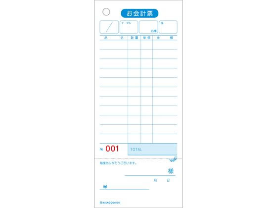 ヒサゴ お会計票 領収証付75×177_1P No.入 500枚 2012N 1箱(ご注文単位1箱)【直送品】