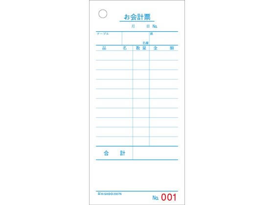ヒサゴ お会計票 No.入 500枚 2007N 1箱(ご注文単位1箱)【直送品】