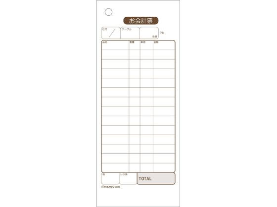 ヒサゴ お会計票 70×175_2P 300セット 2039 1箱(ご注文単位1箱)【直送品】