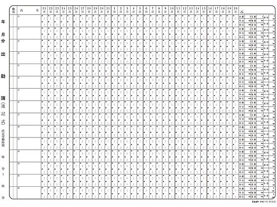 日本法令 出勤簿(連名21日より1か月分)B4 労務2-1A 1冊(ご注文単位1冊)【直送品】