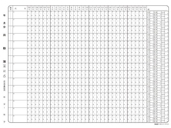 日本法令 出勤簿 (連名26日より1ヶ月)B4ヨコ 労務2-2A 1冊(ご注文単位1冊)【直送品】