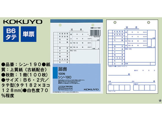 コクヨ 届書 シン-190 1冊(ご注文単位1冊)【直送品】