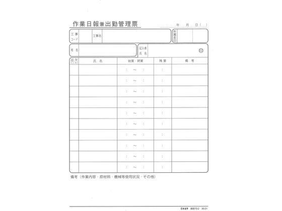 日本法令 作業日報兼出勤管理票(建設業) 建設70-2 1冊(ご注文単位1冊)【直送品】