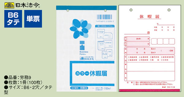 日本法令 休暇届 労務9 1冊(ご注文単位1冊)【直送品】