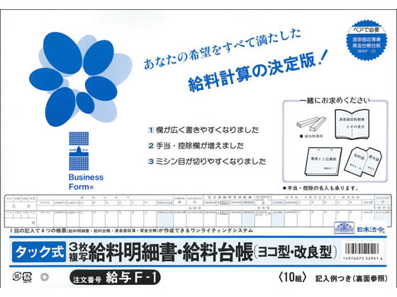 日本法令 タック式給料明細書・給料台帳 給与F-1 1冊(ご注文単位1冊)【直送品】