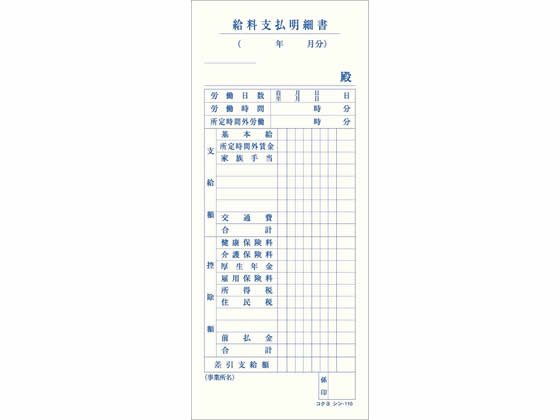 コクヨ 給与支払明細書 縦177×横75mm 100枚 シン-110 1冊(ご注文単位1冊)【直送品】