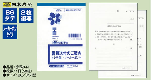日本法令 タテ型書類送付のご案内 50組 庶務8-N 1冊(ご注文単位1冊)【直送品】
