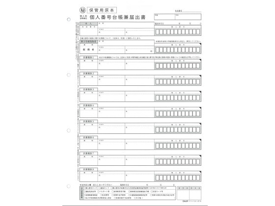 日本法令 個人別・世帯単位 台帳兼届出書 マイナンバー2-1 1冊(ご注文単位1冊)【直送品】