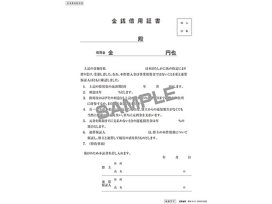 日本法令 金銭借用証書 B5 10枚 契約9-4 1冊(ご注文単位1冊)【直送品】