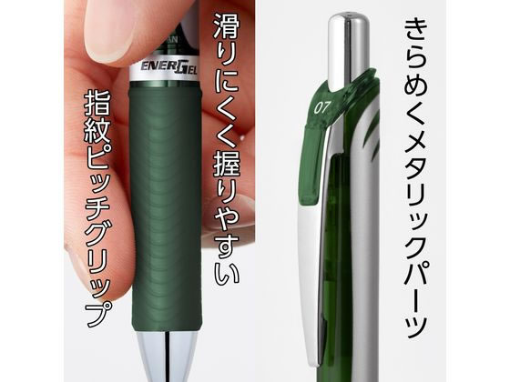 ぺんてる エナージェル ノック式 シルバー軸 0.7mm フォレストグリーン 1本(ご注文単位1本)【直送品】