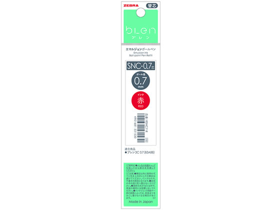 ゼブラ エマルジョンボールペン替え芯SNC-0.7芯 赤 RSNC7-R 1本(ご注文単位1本)【直送品】