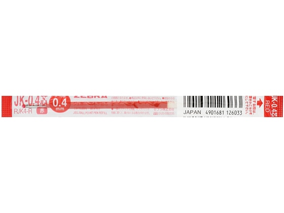 ゼブラ ジェルボールペン替芯JK-0.4芯 赤 RJK4-R 1本(ご注文単位1本)【直送品】