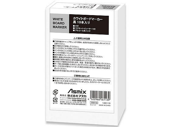 アスカ ホワイトボードマーカー 黒 10本 WM10 1箱(ご注文単位1箱)【直送品】