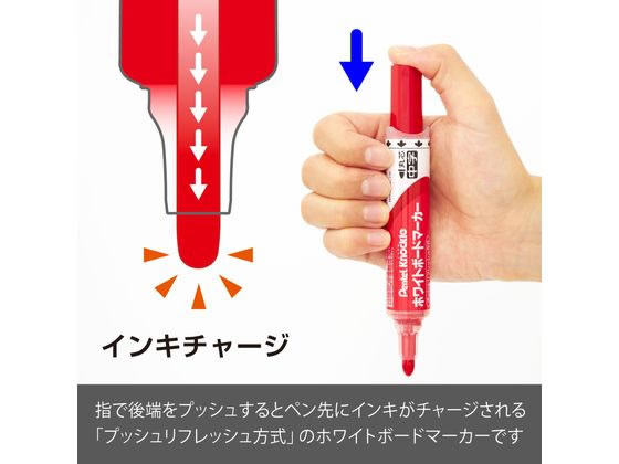 ぺんてる ホワイトボードマーカー ノックル 中字 赤 10本 EMWLM-B 1箱(ご注文単位1箱)【直送品】