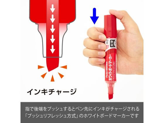 ペンテル ホワイトボードマーカー 平芯 太字 赤 EMWL6W-B 1本(ご注文単位1本)【直送品】
