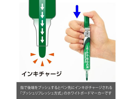 ぺんてる ホワイトボードマーカー ノックル 細字 緑 10本 EMWLS-D 1箱(ご注文単位1箱)【直送品】