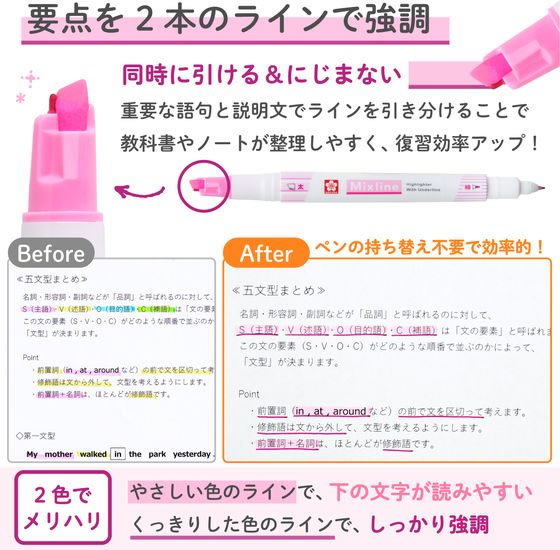 サクラクレパス ミックスライン マーカー ソフト蛍光ピンク VUK-T#320S 1本(ご注文単位1本)【直送品】