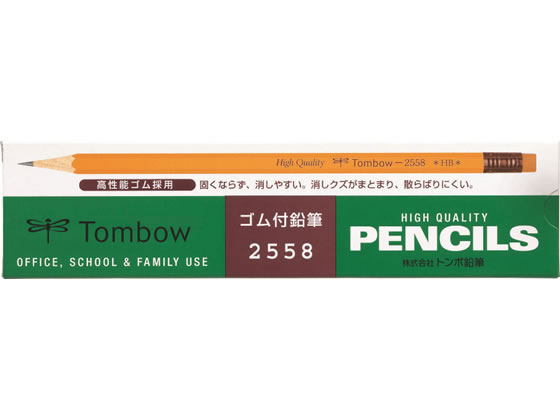 トンボ鉛筆 消しゴム付き鉛筆 HB 12本 2558-HB 1打(ご注文単位1打)【直送品】