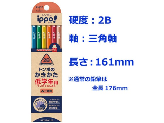 トンボ鉛筆 ippo! 低学年用かきかた 三角 ナチュラル 2B 12本 1打(ご注文単位1打)【直送品】