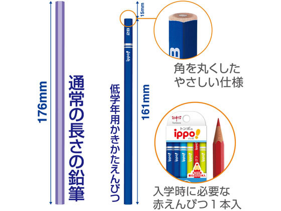 トンボ鉛筆 ippo! 低学年用かきかた 三角 ブルー 2B 12本 1打(ご注文単位1打)【直送品】