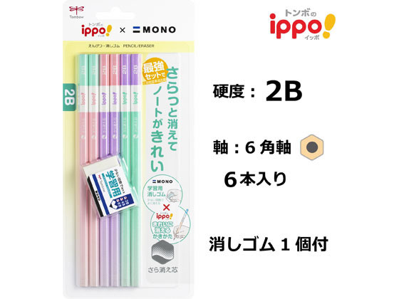 トンボ鉛筆 きれいに消える 2B 6本学習消しゴム PPB-711B 1セット(ご注文単位1セット)【直送品】