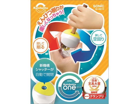 ソニック ラチェッタワン ハンディ鉛筆削り イエロー SK-8810-Y 1個(ご注文単位1個)【直送品】