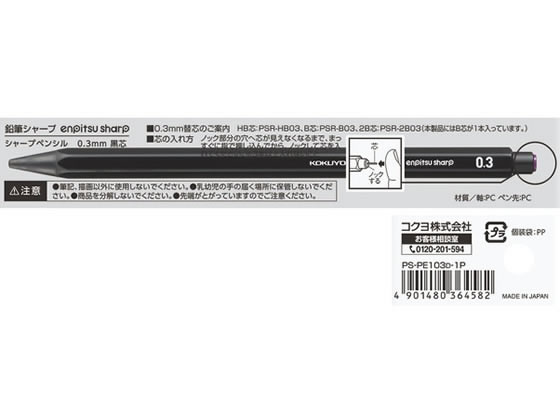 コクヨ 鉛筆シャープ 0.3mm 黒 PS-PE103D-1P 1本(ご注文単位1本)【直送品】