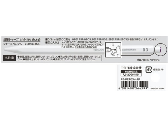 コクヨ 鉛筆シャープ 0.3mm 白 PS-PE103W-1P 1本(ご注文単位1本)【直送品】