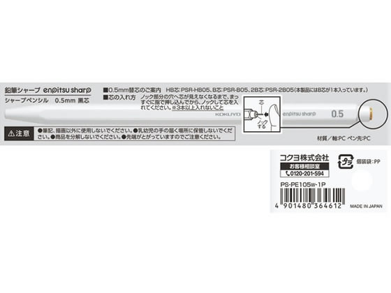 コクヨ 鉛筆シャープ 0.5mm 白 PS-PE105W-1P 1本(ご注文単位1本)【直送品】