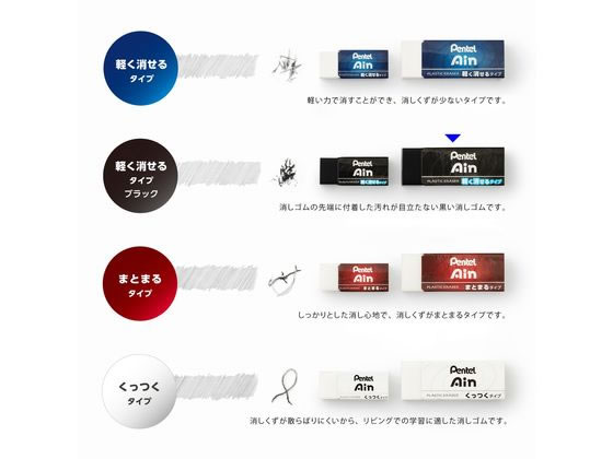 ぺんてる アイン消しゴム 軽く消せるタイプ 大 ブラック 30個 1箱(ご注文単位1箱)【直送品】