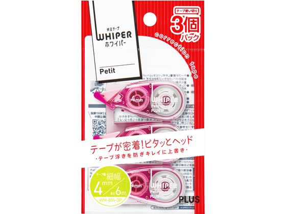 プラス 修正テープホワイパープチ3個4mmピンクWH-814-3P 49-244 1個(ご注文単位1個)【直送品】