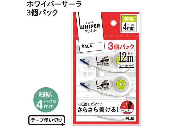 プラス 修正テープ ホワイパーサーラ 3個 4mm グリーン 51-556 1パック(ご注文単位1パック)【直送品】
