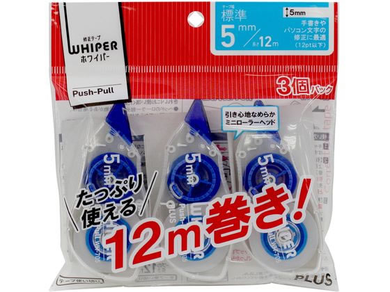 プラス ホワイパープッシュプル 5mm ブルー 3個 1パック(ご注文単位1パック)【直送品】