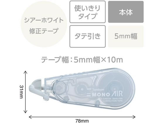 トンボ鉛筆 修正テープ モノエアー5 5mm シアーホワイト CT-CA5C24 1個(ご注文単位1個)【直送品】