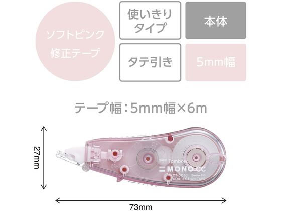 トンボ鉛筆 修正テープ モノCC5 5mm ソフトピンク CT-CC5C82 1個(ご注文単位1個)【直送品】