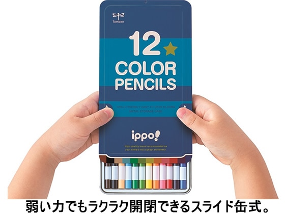 トンボ鉛筆 ippo!スライド缶入色鉛筆12色 プレーン ブルー 1セット(ご注文単位1セット)【直送品】